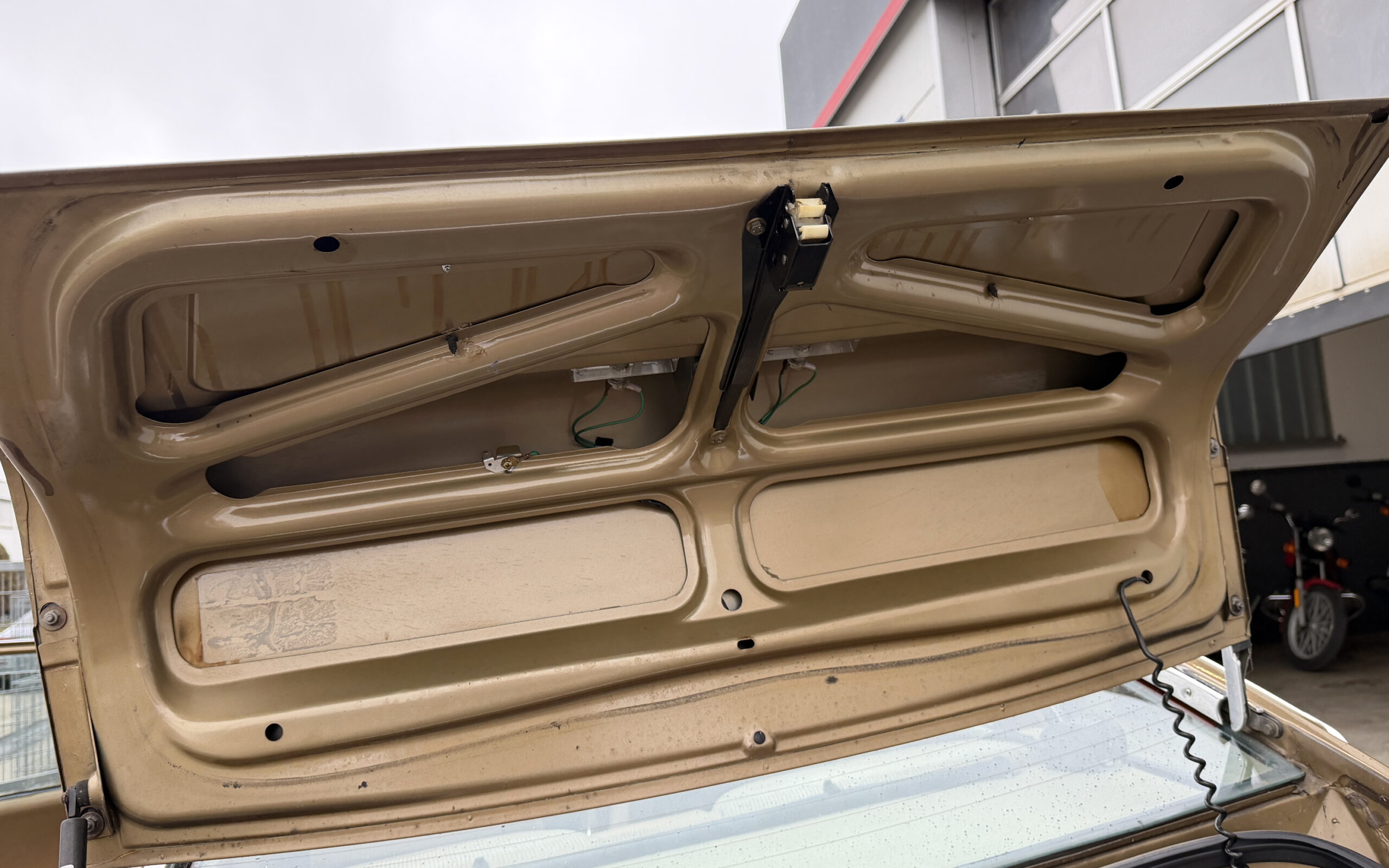 Laut Vorbesitzer soll die Laufleistung von rund 74000 original sein, was aufgrund des makellosen Zustandes der Innenausstattung und auch der unrestaurierten Karosserie sehr glaubhaft ist. Nach unseren Messungen befindet sich die Lackierung zum größten Teil noch im schönen Erstlack.