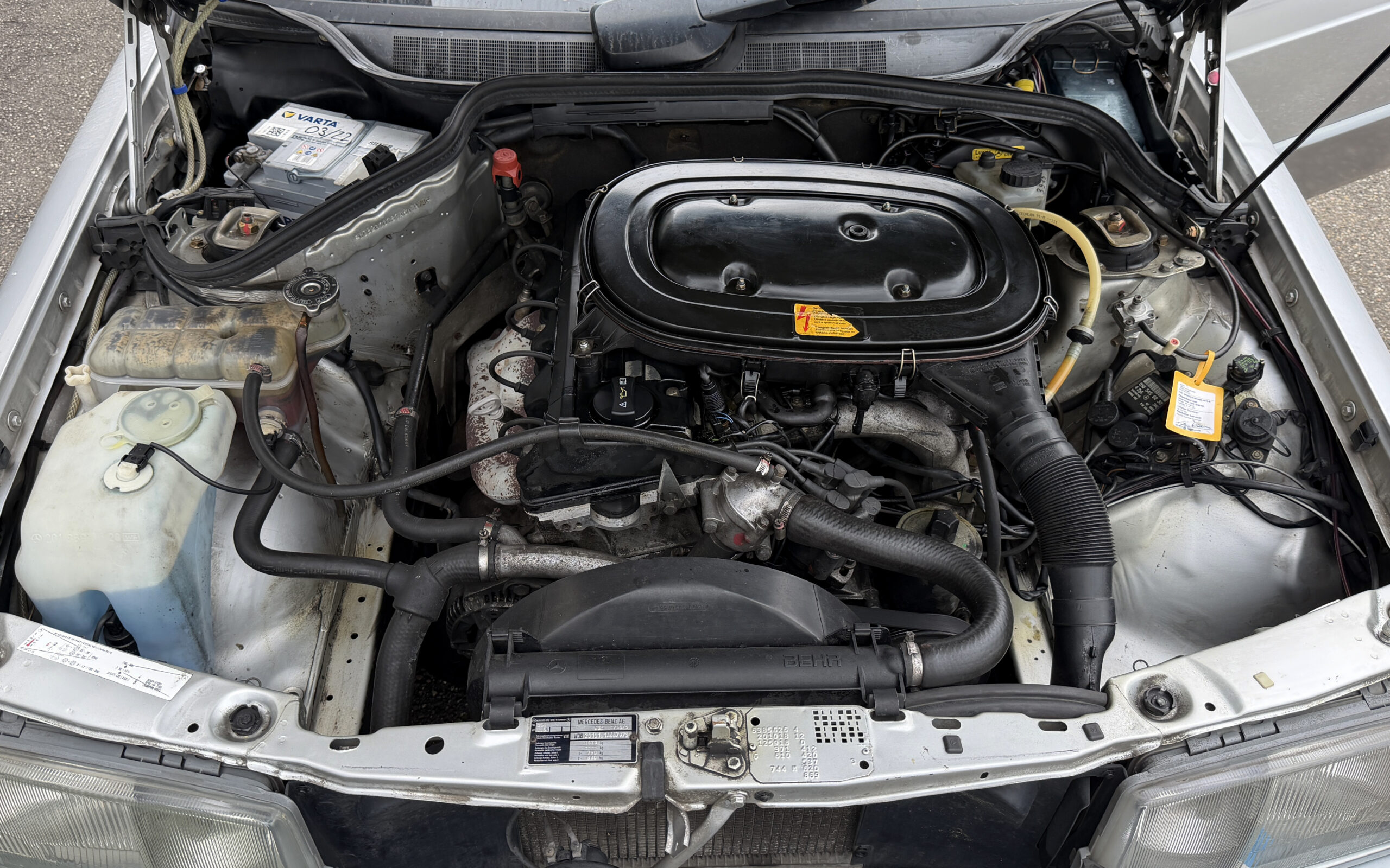 Der Wagen befindet sich, nach unseren Messungen, bis auf einen dünn nachlackierten Kofferdeckel und nachlackierten Kunststoff-Stoßfängern im schönen Erstlack. Er wurde nachweislich an einigen Bauteilen mit Trockeneis gereinigt und anschließend versiegelt, um größtmöglichen Korrosionsschutz zu gewähren.