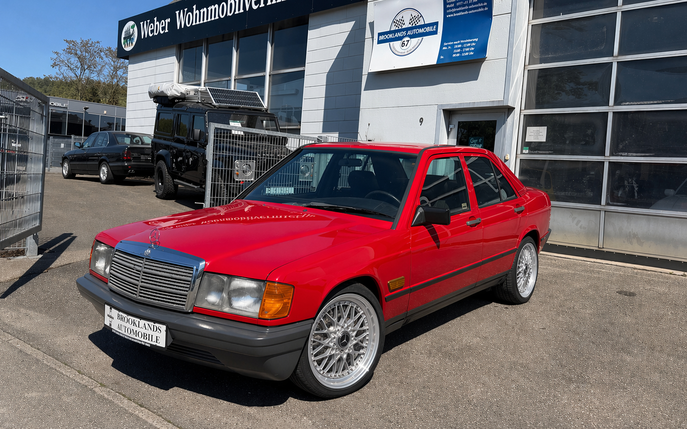 Der Mercedes 190 ist heute einer der beliebtesten und in Deutschland meisterverbreiteten Klassiker. Als Mercedes den Baby-Benz 1982 vorstellte, schockierte er zunächst: keine Chromstoßstangen, das barocke Blechkleid vorheriger Modelle war geglättet. Stattdessen Kunststoff und eine Karosserie aus dem Windkanal. Ab 1983, mit Premiere des Flüsterdiesels im 190 D, entwickelte sich der kleinste Benz zum Bestseller. Der 190er avancierte zu den sichersten und komfortabelsten Autos seiner Klasse, die neu entwickelte Raumlenkerhinterachse sorgte für Top-Fahreigenschaften. Der Mercedes 190 zählt immer noch zu den langlebigsten Autos überhaupt.